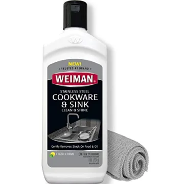 Show moreIntroducing the unrivaled Weiman Stainless Steel Sink and Cookware Cleaner, a must-have for every household that values cleanliness and sophistication. This top-selling cleaner is designed to eliminate a myriad of pesky stains and residues from your stainless steel surfaces, ensuring they go from dull and dingy to bright and dazzling. Crafted specifically for food contact surfaces, this powerful cleaner is safe for use as long as it is thoroughly rinsed after application. Bid farewell to stubborn rust, lime, tarnish, soap scum, and persistent hard water deposits that often mar your beautiful kitchen and cookware. With the Weiman cleaner in your arsenal, you'll transform strenuous cleaning tasks into a quick and easy job.
