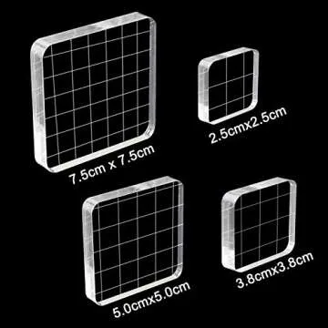 WeiMeet 4 Pieces Stamp Blocks Acrylic Clear Stamping Blocks Tools with Grid Lines for Scrapbooking Crafts Making(Square)