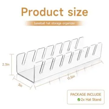 WeiranLife 2024 New Hat Stand for Baseball Caps Display and Organizer,No Install Acrylic Hat Holder for 14 Baseball Caps for Bedroom, Closet, Dresser and Wall 2PCS