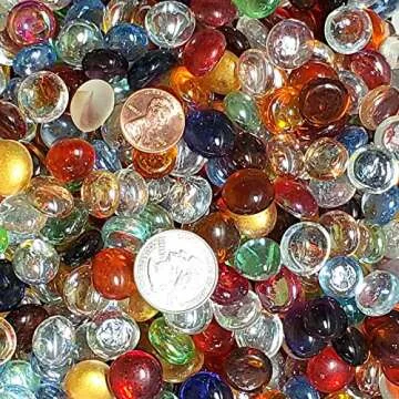 WeJe Mancala Stones Mini Glass Gems (12-16mm) - 12oz (140 to 150 pcs) Flat Glass Marbles with Velvet Bag for Mancala Beads Replacement (Mini Multi-Colors Assorted)