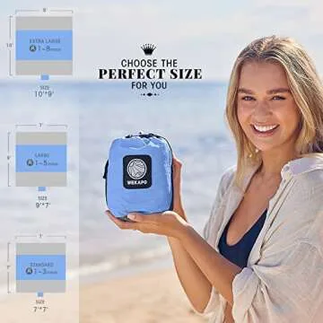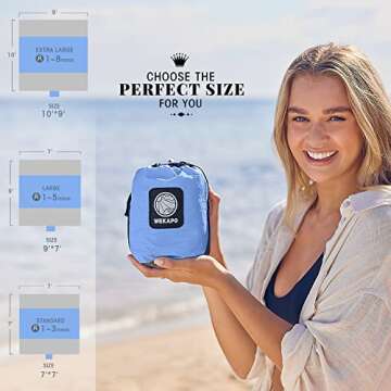 Show more The Wekapo Beach Blanket is not just an ordinary blanket; it is the ultimate companion for all your outdoor adventures. Measuring an impressive 10'x9' (300cmX280cm), this blanket is designed to comfortably accommodate up to 7 people, making it perfect for family outings or gatherings with friends. Weighing only 14 oz, its lightweight design allows you to take it anywhere, effortlessly fitting into your suitcase or backpack. Each blanket comes with 6 sturdy metal stakes and features 4 anchor loops to ensure that it stays firmly in place, even on windy days.
