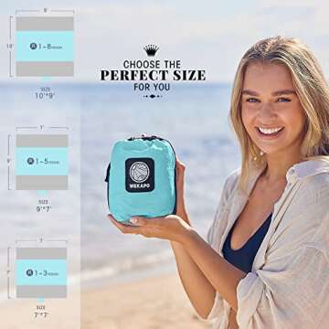 Show more Discover the ultimate outdoor companion with the WEKAPO Beach Blanket. This extra large, compact mat measures an impressive 7'x7' (210cm x 210cm), making it the perfect fit for 1 to 3 adults to lounge comfortably on sandy beaches, picnic spots, or in your backyard. Crafted from durable ripstop nylon, it combines practicality with style, offering a beautiful gray finish designed to draw attention while providing a relaxing experience outdoors. Its lightweight yet robust construction ensures you can easily carry it along on all your adventures, whether it's a trip to the beach, a camping getaway, or a day in the park.