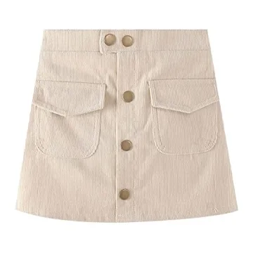 WELAKEN Girl's Lightweight Cotton Corduroy Skirt with Pockets for Spring Fun
