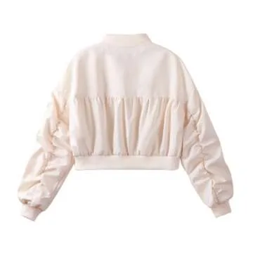 WELAKEN Lightweight Multiple Pockets Zip Up Bomber Jacket for Girls Toddler & Kids II Little Girl's Casual Flight Crop Jacket,15Y