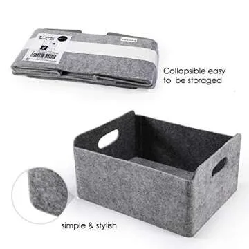 The material used is a combination of recycled felt that provides a comfortable touch while preventing scratches on your surfaces. Its flexibility ensures that when not in use, it can be neatly collapsed to 11 x 5.9 x 2 inches, saving precious space. Whether you need to organize your kitchen, bedroom, or bathroom, this bin does it all with style and ease.