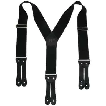 These suspenders boast a classic Y-back design, making them perfect for wearing under any shirt or jacket without unsightly hardware showing. Available in a sophisticated navy blue, they complement a variety of looks, from business casual to formal attire. Plus, they're handcrafted right here in the USA, promising exceptional durability crafted from over a century's worth of perfected techniques.