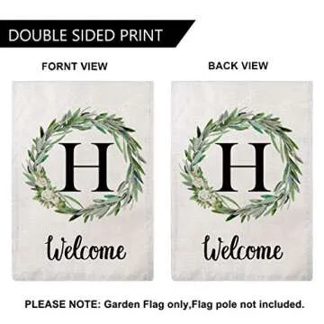 Welcome Decorative Garden Flags with Letter H/Olive Wreath Double Sided House Yard Patio Outdoor Garden Flags Small Garden Flag 12.5×18 Inch