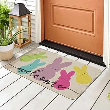 Welcome Easter Decorative Doormat, Seasonal Rug Spring Bunny Sign Floor Mat Switch Mat for Indoor Outdoor 17 x 29 Inch DM052