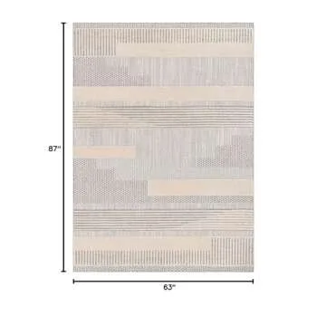 Show more Introducing the Well Woven Harlow Collection Briar Beige Area Rug, an exquisite embodiment of modern tribal minimalism thoughtfully designed to elevate any living space. With its stunning geometric patterns and subtle beige hues, this 5x7 rug seamlessly blends functionality with elegance, making it a perfect addition to your living room, dining room, or bedroom. Crafted for durability, it not only enhances your home decor but also withstands the challenges of daily life with remarkable ease. Experience the quality that comes with each woven fiber, promising longevity and timeless style.