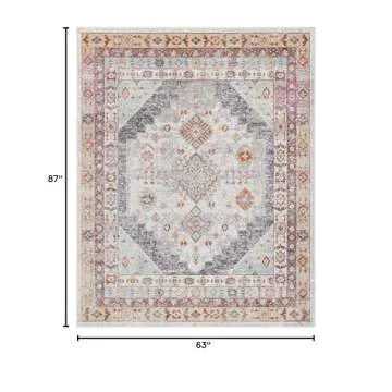 Well Woven Vera Vintage Grey Tribal Diamond Medallion Pattern Area Rug (5'3" x 7'3")