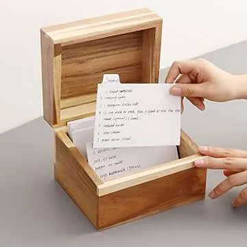 The recipe box is made from high-quality Acacia wood.