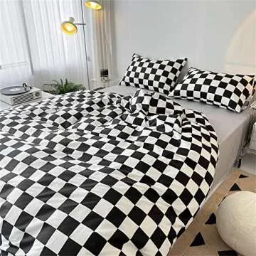 Wellboo Black White Plaid Comforter Sets Twin Women Men Black and White Checkerboard Grid Bedding Comforters Cotton Boys Girls Modern Black Checkered Geometric Quilts Luxury Abstract White Bedding