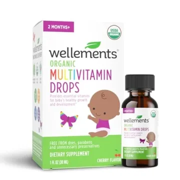 Wellements Organic Baby Multivitamin Drops - Cherry Flavor Liquid for Infants & Toddlers (2 Months+)