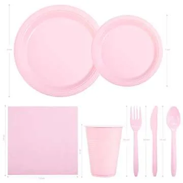 WELLIFE 210 Pieces Pink Party Supplies, Disposable Dinnerware Set, Including Pink Plastic Plates, 12OZ Pink Cups, Pink Plastic Cutlery and Paper Napkins Serve 30 Guests for Party