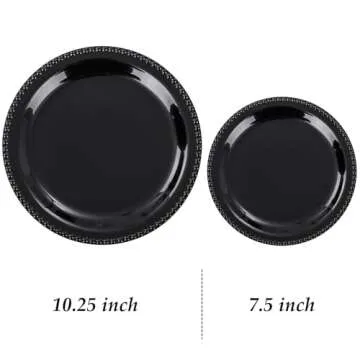 WELLIFE 60 PCS New Year Black Plastic Plates, Heavy Duty Black Disposable Plates Including 30PCS 10.25'' Black Dinner Plates & 30PCS 7.5'' Black Dessert Plates -Black Disposable Plates for Party
