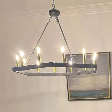 Show more Introducing the Wellmet 12 Light Large Chandeliers for High Ceilings, a stunning lighting solution that breaks the mold of traditional designs. Measuring an impressive 40 inches wide and standing at 27.6 inches high, this unique hexagonal chandelier doesn’t just illuminate your space; it transforms it into a spectacular focal point. Its beautiful blend of rustic charm and sophisticated elegance makes it the ideal choice for enhancing southwestern-inspired home decor. Whether it’s gracing your kitchen island, illuminating your dining room table, or welcoming guests in an entry hall, this chandelier promises to impress.