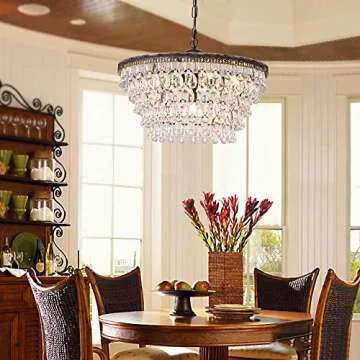 Wellmet Crystal Chandelier, 6-Light 5 Tiers Farmhouse Bronze Ceiling Lighting Fixture, Modern Foyer Dining Room Chandeliers for Bedroom, Hallway, Bar, Kitchen, W20-inch