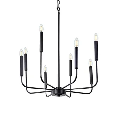 Show moreIlluminate your home with the stunning Wellmet Modern Farmhouse Black Chandelier, an exquisite addition to any space that demands a luxurious and modern flair. This chandelier’s unique candle-style silhouette, crafted from high-quality matte black metal, brings a sophisticated twist to traditional lighting as it elegantly showcases its bare design, seamlessly blending with contemporary or rustic aesthetics. Measuring 26 inches in width and 31.9 inches in height, this medium-sized fixture is versatile enough to enhance various rooms within your home—from the dining room to hallways or even your bedroom, providing ample illumination and style.