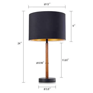Show moreIntroducing the Wellmet Wood Table Lamp, a stunning addition to your home that marries function with modern elegance. Featuring a sleek, matte black fabric shade with a metallic gold interior, this lamp adds a touch of sophistication to any room. With its height of 24 inches and a cylindrical lamp shade measuring 13 inches in diameter, it stands tall on a wood grain finish metal rod, making it a standout piece perfect for various settings. Whether you're enhancing your living room decor or adding flair to your bedroom bedside, this lamp is designed to seamlessly fit into contemporary, farmhouse, or minimalist aesthetics.