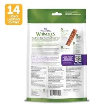 Wellness WHIMZEES Veggie Sausage Dog Dental Treats, Natural Chews, Medium Size Stick, (14 Count)