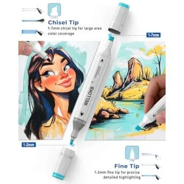 When compared to other art markers on the market, the WELLOKB Alcohol Markers stand out due to their extensive 100 color options and dual-tip functionality. Many competitors offer sets with fewer colors or only one type of tip. The waterproof feature is a unique advantage, allowing for greater creative possibilities without the fear of ruining artwork. Additionally, the included carrying case is a rare bonus that adds to the portability and organization of your markers.