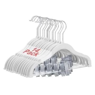 Show moreIntroducing the Wellong Baby Clothes Hangers with Clips, the ultimate solution for organizing your little one's wardrobe with style and efficiency. These hangers come in a pack of 14, tailored for heavy-duty use to ensure they can handle all your child’s clothing needs. Crafted from premium Eco-PP material, they feature a soft, flocked velvet finish which not only enhances their appearance but also protects your baby's delicate garments from scratches and slipping. With their slim design at just 0.2 inches thick, these hangers maximize your closet space, saving you up to 40% of valuable storage room while keeping your baby's wardrobe neatly arranged.