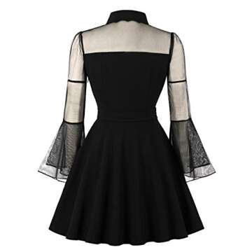 Show moreStep into the spotlight with the stunning Wellwits Women's Keyhole Mesh Bell Long Sleeve Gothic Cocktail Dress in classic black. This exquisite dress is designed to be your go-to choice for mix of elegance, comfort, and a touch of whimsy. With its flattering fit-and-flare silhouette and eye-catching dramatic bell sleeves, it captures the essence of gothic fashion while ensuring you turn heads at every occasion. Whether you're dressing for a cocktail party, a Halloween celebration, or an intimate date night, this dress effortlessly blends sophistication with a playful edge. Available in an extensive range of sizes from XS to 4XL, it’s tailored to fit and flatter every body type, making it a versatile addition to your wardrobe.