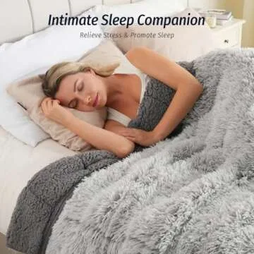 Wemore Shaggy Long Fur Faux Fur Weighted Blanket, Cozy and Plush Sherpa Long Hair Blanket for Adult 15lbs, Fluffy Fuzzy Sherpa Reverse Heavy Blanket for Bed, Couch, Backprint Grey, 60 x 80 Inches