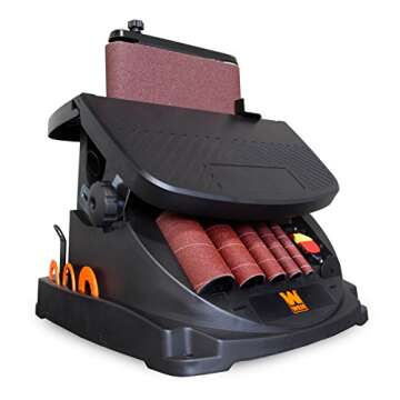 Show moreIntroducing the WEN 6523 Oscillating Belt & Spindle Sander - the perfect tool for woodworkers and DIY enthusiasts alike! Designed with versatility in mind, this dual-function sander combines both a belt and spindle sanding capabilities, making it an essential addition to your workshop. With multiple sanding drum sizes (1/2 inch to 2 inches) and an efficient 4 x 24 inch belt, this sander enhances your wood project experience without compromising on space. Powered by a robust 3.5-amp motor, it operates with impressive belt speeds of up to 1575 FPM and spindle speeds reaching 2000 RPM, ensuring maximum efficiency and effectiveness in your tasks.