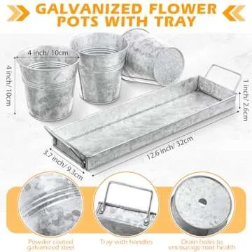Wenqik 2 Sets Herb Garden Planter Pot Set with Tray Metal Windowsill Plant Pot with Drainage Farmhouse Decorative Live Herb Garden Kit for Home Kitchen Indoor Outdoor Apartment Balcony Window(Silver)