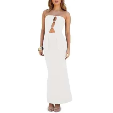 Wenrine Two Piece Sets for Women Summer Bodycon Sexy Outfit Cutout Tube Tops Knit Maxi Skirt Sets Clubwear Dresses White