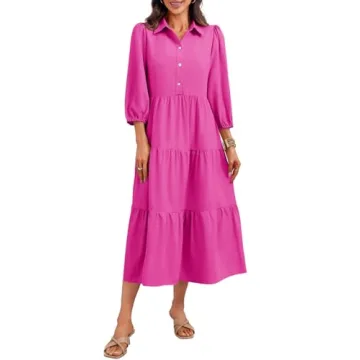 Show moreElevate your wardrobe with the Wenrine Women's Casual 3/4 Sleeve Shirt Dress, the ultimate blend of style and comfort. Crafted from a soft and breathable fabric, this maxi dress is designed to keep you cool while ensuring an elegant silhouette. With its tiered design that beautifully drapes over your body, you'll experience a flattering fit that allows for effortless movement throughout your day. The 3/4 sleeves with elasticated cuffs add a chic touch to this versatile piece, making it perfect for both casual and formal occasions. The partial button front provides an extra layer of versatility, allowing you to customize your neckline to reflect your personal style. Suitable for everything from brunch to evening gatherings, this dress truly is a must-have staple that transitions seamlessly from day to night.