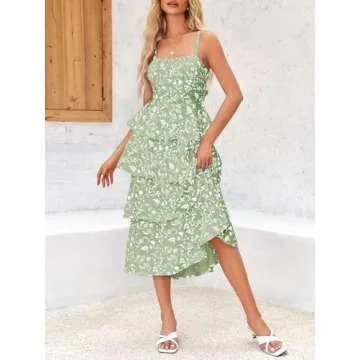 Wenrine Womens Summer Floral Maxi Dresses Sleeveless Spaghetti Strap Tie Back Ruffle Tiered Flowy Dresses