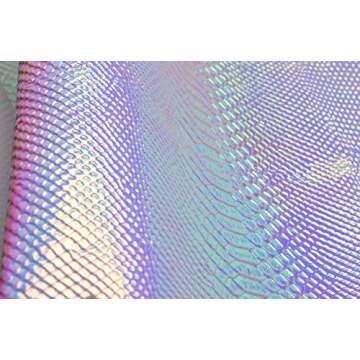 Wento 3 Yards Light Blue Snake Skin Holographic Fabric Vinyl Leather,Holographic Snake Skin Fabric,Stiff Material Holographic Leather.Wide 54''x 108''Length