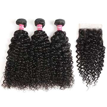 Show more Introducing the WENYU Hair Brazilian Virgin Curly Hair - the ultimate solution for those who desire luscious, bouncy curls that exude beauty and confidence. These 3 bundles of 100% Brazilian Kinky Curly Human Hair come with a versatile 4x4 Lace Closure in a natural black shade, achieving that stunning look while allowing for a flawless blend. Available in lengths of 10 inches to 26 inches, each bundle weighs between 88g to 98g, providing ample volume for styling. Investing in this beautiful hair means you're not just buying a product; you're opting for premium quality that will elevate your style and personality to new heights! Less