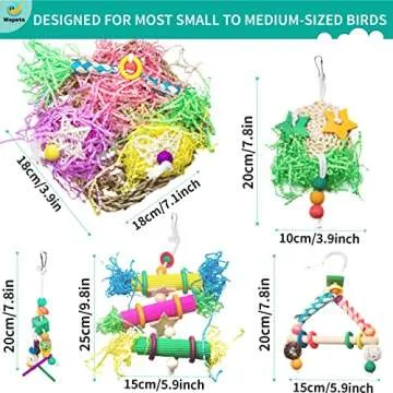 Wepets 5 PCS Natural Shreddable and Chewable Colorful Bird Toy,Provides Exercise and Entertainment for Parakeets, Suitable for Budgies, Cockatiels, Lovebirds, Parrotlets, and Conures.