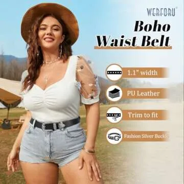 Show moreIntroducing the WERFORU Women Leather Belt, a stylish and adaptable accessory tailored for the modern woman. Crafted with meticulous attention to detail, this fashionable belt effortlessly combines elegance and functionality. Its standout feature, the stunning western hollow flower buckle, captures the spirited essence of boho-chic style, perfect for everything from vibrant music festivals to relaxed beach outings. Whether you're elevating a pair of jeans or complementing a flowy dress, this belt's versatility is bound to enhance your wardrobe significantly.