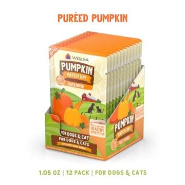Weruva Pumpkin Patch Up! Pumpkin Puree Pet Food Supplement for Dogs & Cats, 1.05oz Pouch (Pack of 12)