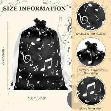 Wesnoy 24 Pcs Music Notes Gift Bags Musical Note Drawstring Treat Bag Music Decorations Party Favor for Musician Gifts Social Media Musical Party Supplies(5 x 7,White on the Black)