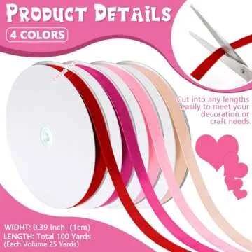 Wesnoy 4 Rolls 100 Yards Valentine's Day Velvet Ribbon Ornaments Gradient Pink Velvet Ribbon for Valentine Handmade Craft Ornament Gift Wrapping and Bow Making Valentine's Day Bouquet Packaging