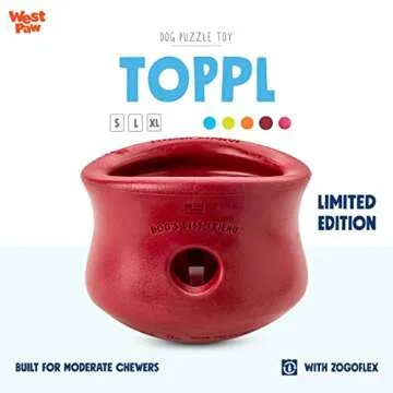 WEST PAW Zogoflex Holiday Toppl Treat Dispensing Dog Toy Puzzle – Interactive Chew Toys for Dogs – Dog Toy for Moderate Chewers, Fetch, Catch – Holds Kibble, Treats, X-Large, Ruby Red