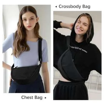 WESTBRONCO Crescent Bag Crossbody Bags for Women Trendy Small Nylon Fanny Pack Sling Hobo Bag Soft Casual, Black