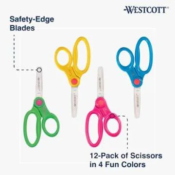 Show more Introduce your child to the world of creativity with our exceptional Kids' Safety Scissors! Designed specifically for little hands, these scissors come in four vibrant colors that kids absolutely love. Each pair features premium stainless steel safety blades with rounded tips, ensuring a safe cutting experience while allowing your young artist to engage in their craft safely. The scissors have been engineered for comfort and usability, equipped with molded handles that suit both left- and right-handed users, making it easier for all children to explore their creativity.