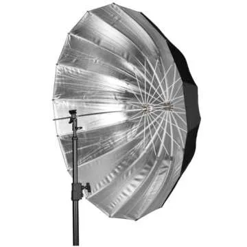 Show more Capture the perfect shot every time with the Westcott 43in. Apollo Deep Umbrella, designed for both amateur and professional photographers. Featuring a specially designed silver reflective bounce interior, this umbrella delivers exceptional light quality, ensuring your subjects shine with clarity and detail. Its deep parabolic shape allows for optimal light control, and the umbrella can be easily collapsed for convenient transport, making it an ideal accessory for studio and on-location shoots alike. With a diameter of 43 inches, it provides ample coverage for both portrait and product photography.