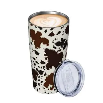 Western Cow Print Tumbler with Lid and Straw, 20 Oz Stainless Steel Insulated Brown Cow Water Bottle Cup Coffee Mug