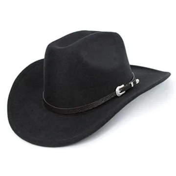 Show moreIntroducing the perfect accessory for every cowboy and cowgirl enthusiast—a stunning black cowboy hat, expertly crafted from a blend of 65% polyester and 35% wool. This western cowboy hat combines a lightweight, comfortable, and breathable design, making it a suitable choice for all seasons. Its versatile style ensures that it is not just a hat but a statement piece that one can wear during all occasions—be it a themed party or a casual outing. With a circumference ranging from 22 to 22.8 inches, a brim width of 2.75 inches, and a hat height of 4.3 inches, this hat fits easily with an adjustable ribbon strip on the inside, allowing for a customized fit that guarantees comfort and stability.