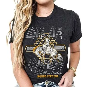 Western Cowboys Shirt for Women Casual Country Music Tees Tops Vintage Graphic T-Shirt Rodeo Tee Tops (M, Gray)