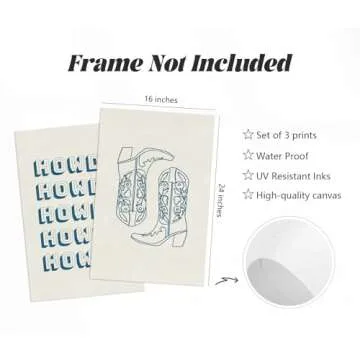 Western Cowgirl Wall Art Decor Blue Coastal Canvas Wall Art Preppy Posters Boots Prints Cowboy Howdy Posters Aesthetic Granddaughter Pictures for Dorm Room Bedroom 16x24x3 Inch Unframed