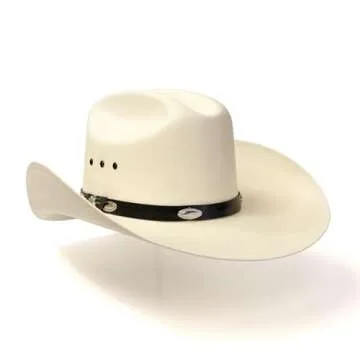 - Stylish Black Hatband: The hat features a sleek black hatband embellished with silver conchos for a touch of elegance.