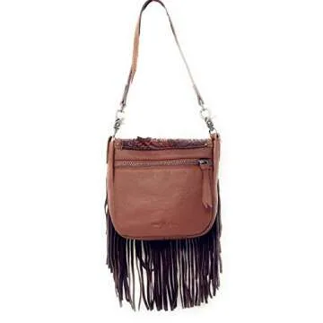Western Genuine Leather Floral Tooled Fringe Womens Crossbody Bag